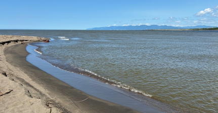 石狩川河口から雄冬岬方面を望む。 |